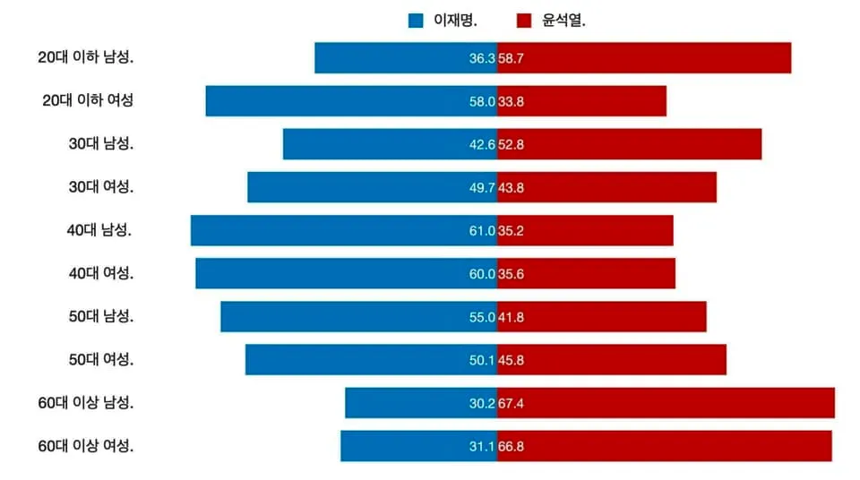 이번 대선은 기존 선거의 주요 균열 요소였던 지역과 세대 외 새로운 균열 범주를 드러냄