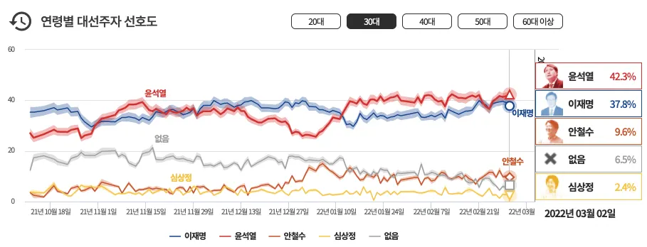 20대~30대 유권자의 투표 성향이 변했다.