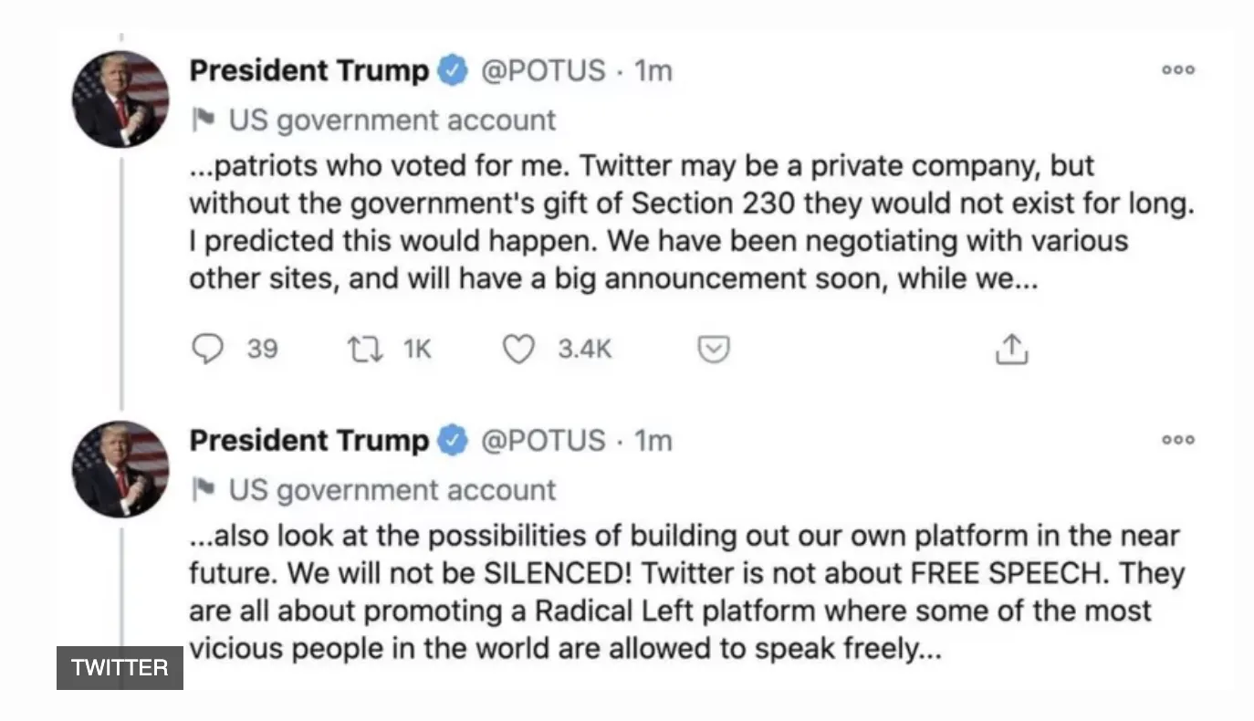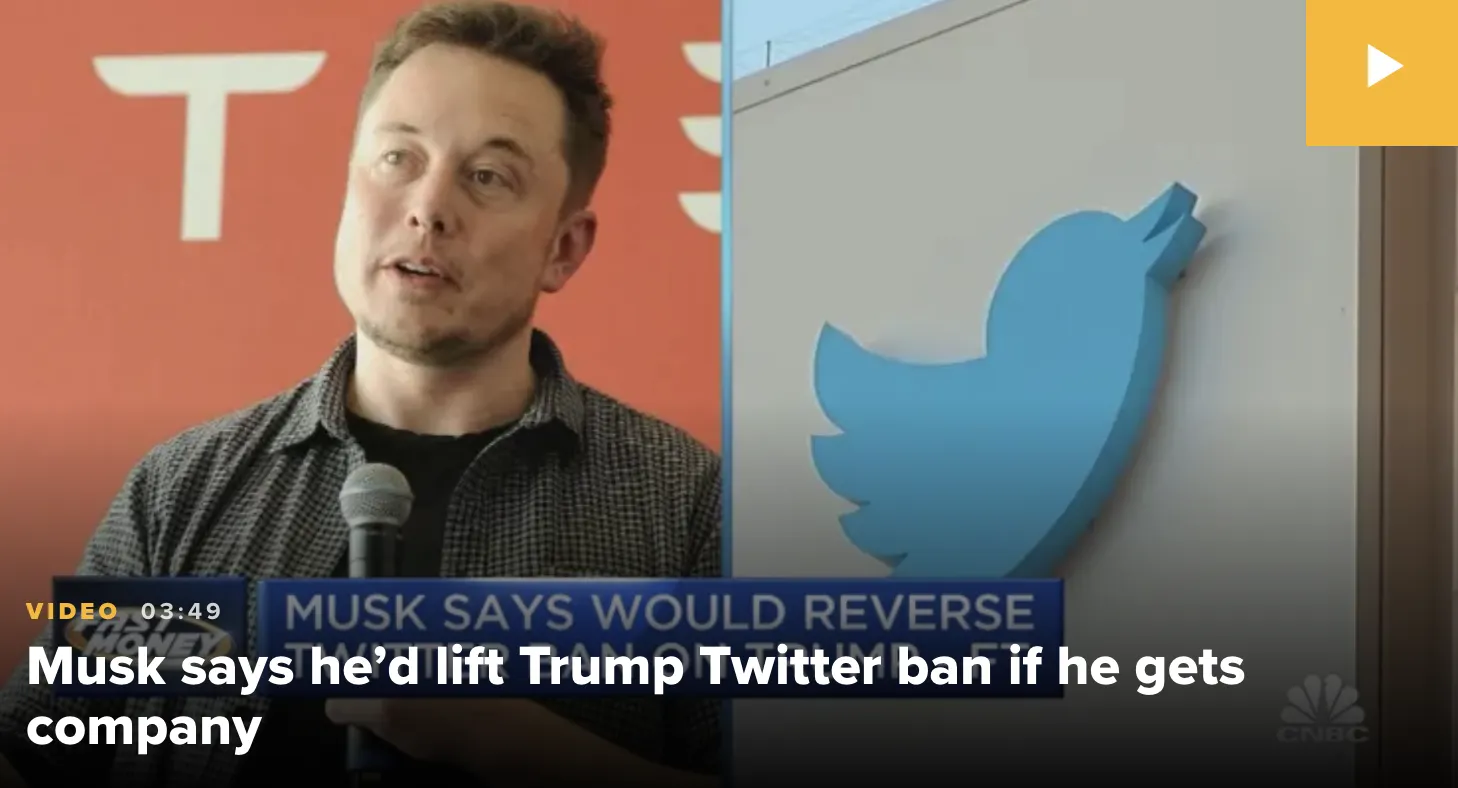 트위터 인수를 확정한 일론 머스크는 영구 정지된 트럼프의 계정을 다시 복귀시키겠다고 선언하며 트위터의 콘텐츠/계정 관리 정책을 미헌법상의 표현의 자유를 보장하는 수준으로 바꾸겠다고 함