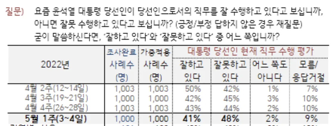 (현재 여론의 흐름을 보면 ‘윤정부에 협치의 메시지를 기대하는 여론이 상당한 것으로 보임' —> 협치의 메시지가 있다면 재신임 or 독자적 행보를 가려한다면 견제를 위한 야권의 역할 부여)